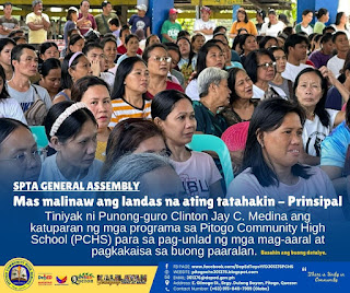 Tiniyak ni Punong-guro Clinton Jay C. Medina ang katuparan ng mga programa sa Pitogo Community High School (PCHS) para sa pag-unlad ng mga mag-aaral at pagkakaisa sa buong paaralan.